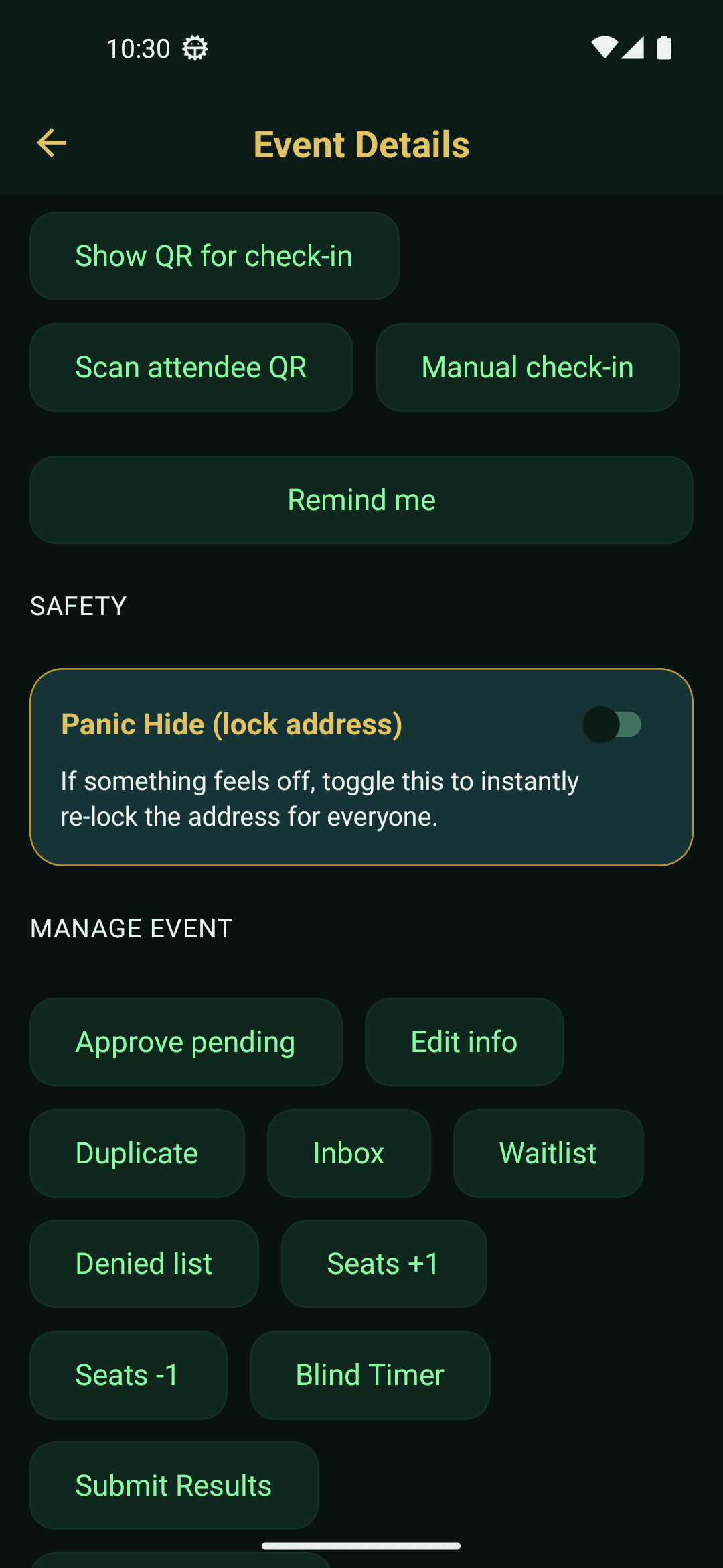 Guests request seats first. Hosts approve deliberately. Exact locations move only after approval and the reveal window.