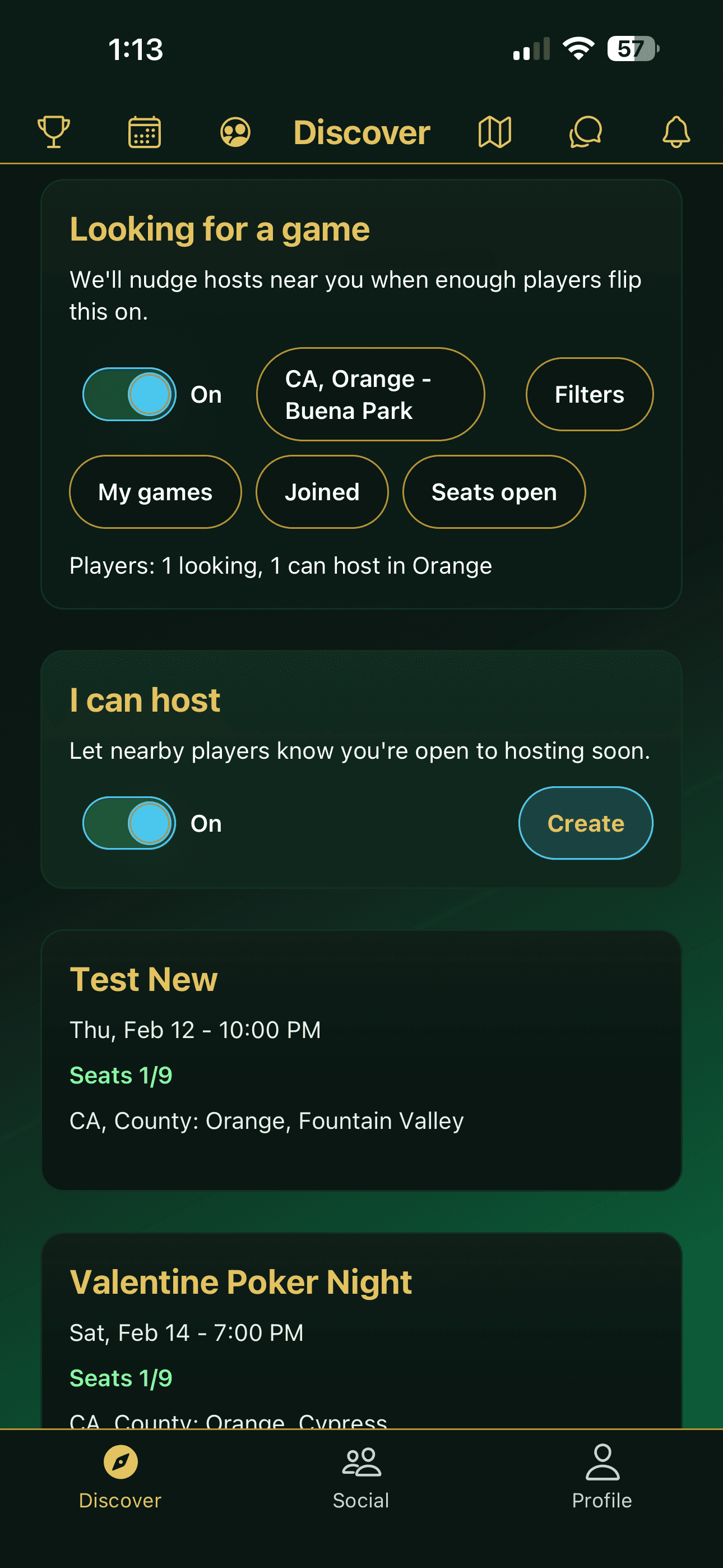Discover and host private poker nights.