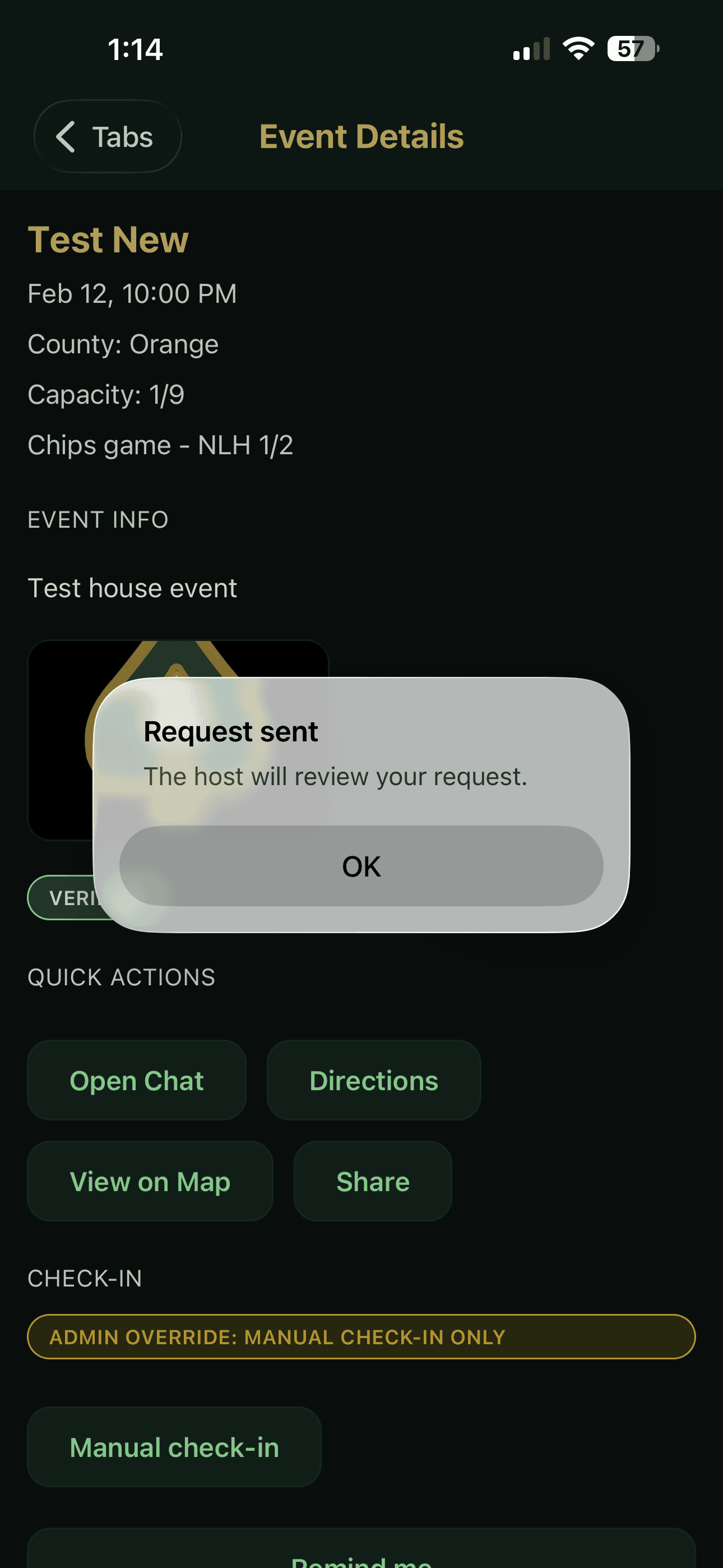 Open the event and request a seat